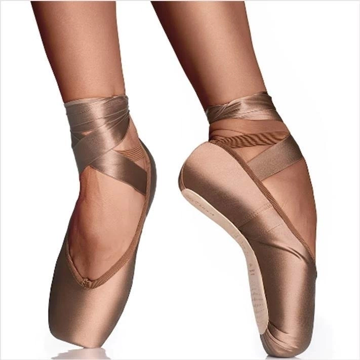 Sapatilha de ponta TOSHIE, cabedal em “V”, fabricado em cetim dublado, forro em algodão, sola de couro e palmilha termoconformada. Possui calcanhar mais baixo